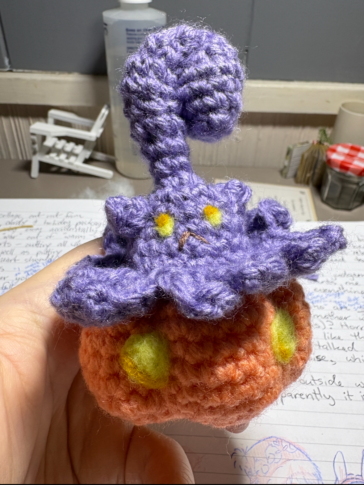 POKÉFAN: “This was my first proper crochet project I've done! The body is based off this pattern from Ravelry, but I ended up Frankensteining a couple of different things together for the leaves... Mostly because I just wasn't experienced enough with written patterns and wanted to watch a video instead. (August 2025)"