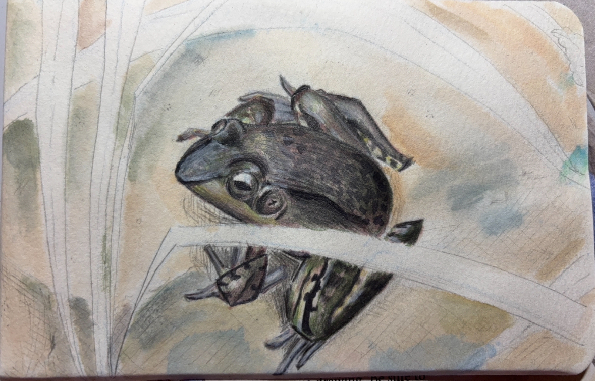 Went on another little not-quite-weekend trip a while ago to the House on the Rock (and some other places in the area). A lot of beautiful sights, particularly the Japanese garden where I saw this fellow (some kind of leopard frog?)! I was trying to really push highlights and shadows, etc and, so, went for a Grisaille technique, using graphite.